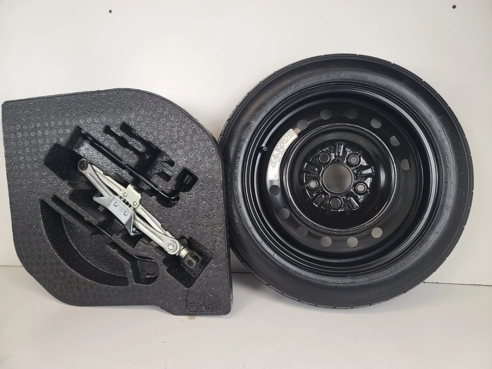 OEM Tire. Fits nicely in the trunk of your vehicle in the spare tire compartment.