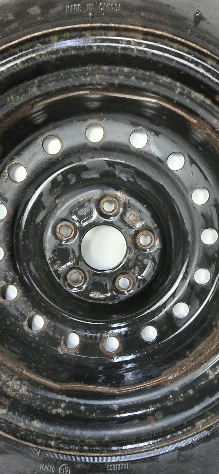 OEM Tire. Fits nicely in the trunk of your vehicle in the spare tire compartment.