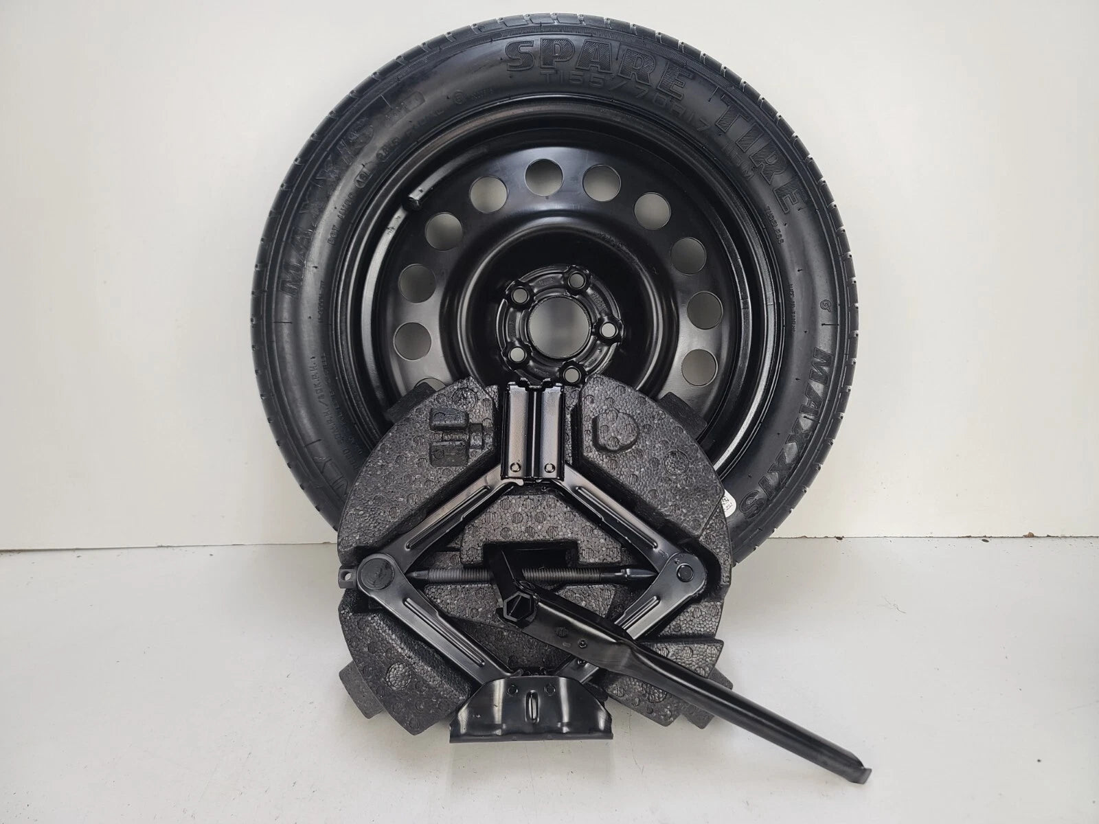 OEM Tire. Fits nicely in the trunk of your vehicle in the spare tire compartment.