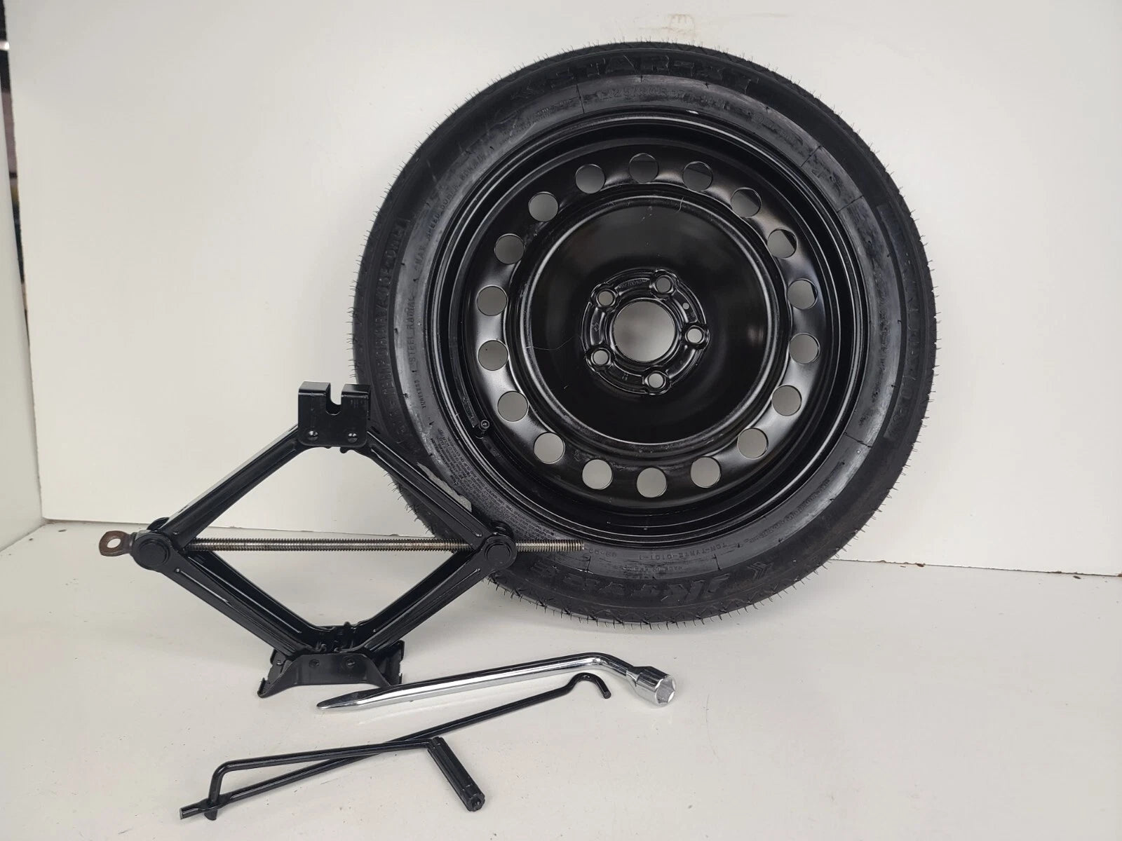 OEM Tire. Fits nicely in the trunk of your vehicle in the spare tire compartment.