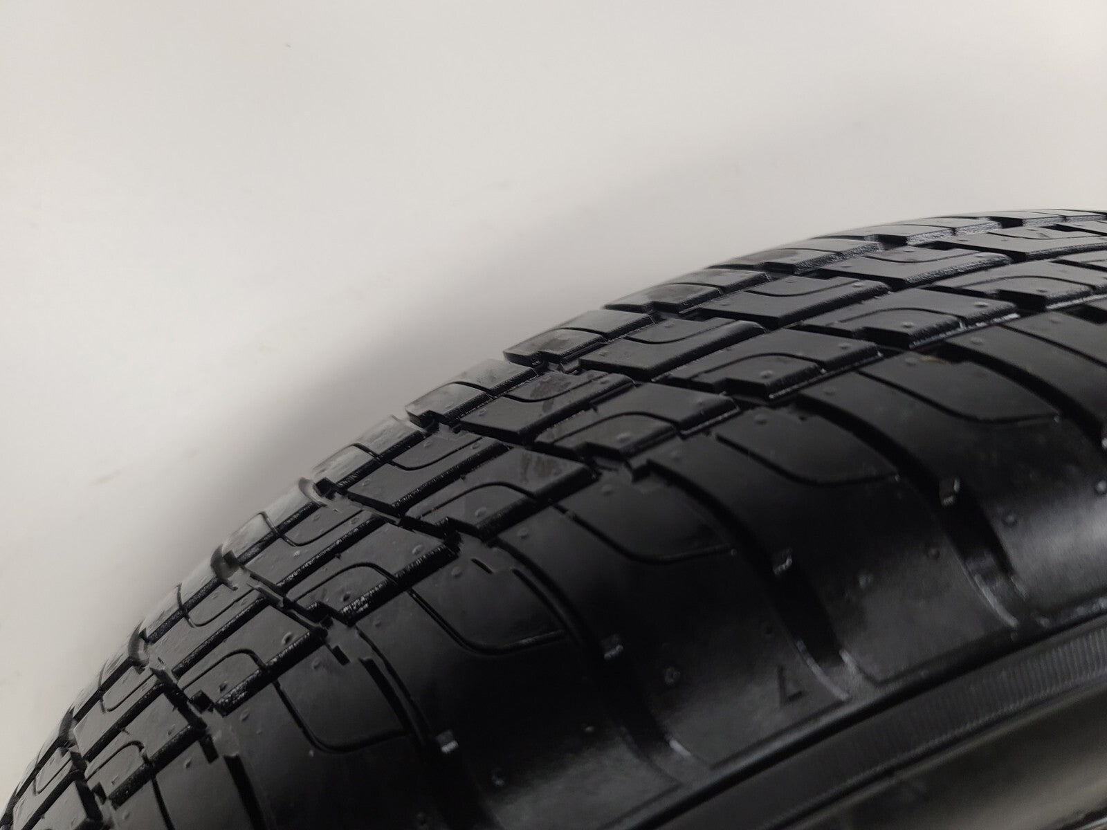 OEM Tire. Fits nicely in the trunk of your vehicle in the spare tire compartment.