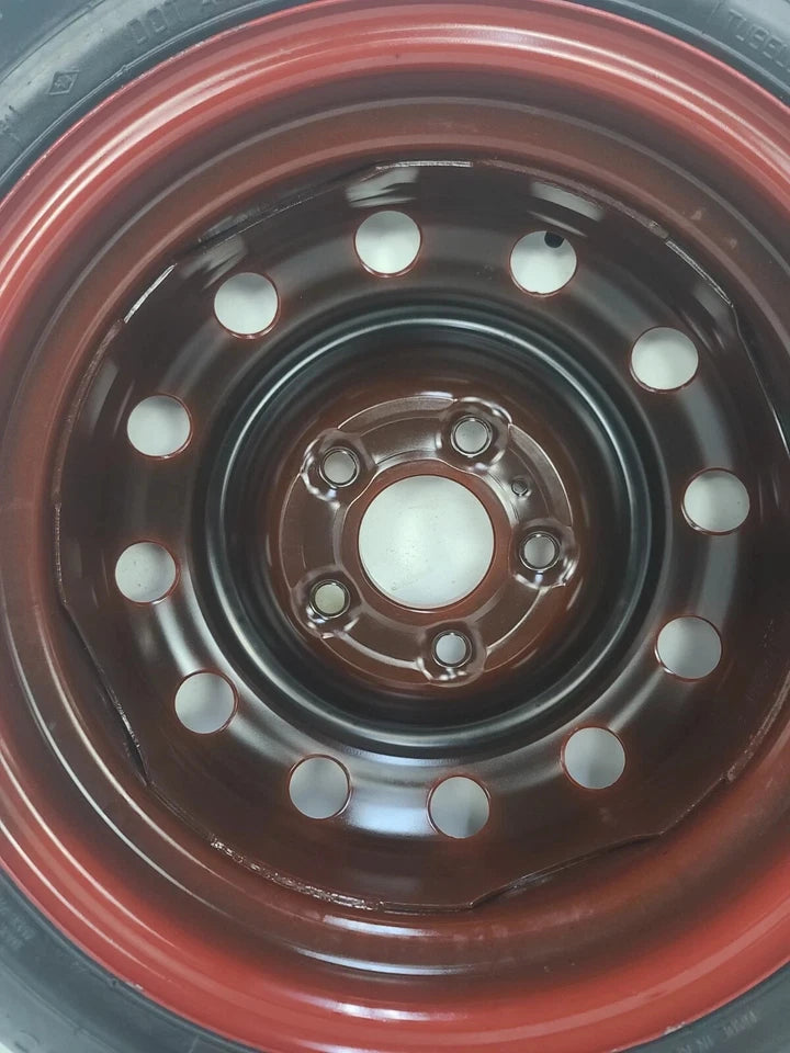 OEM Tire. Fits nicely in the trunk of your vehicle in the spare tire compartment.